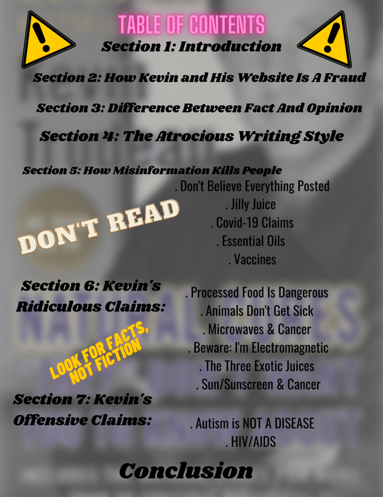 These are just some of the many claims Kevin makes. All of this is misinformation and I will discuss this more in an another section. I want to now talk about the writing style and how misinformation can harm people.